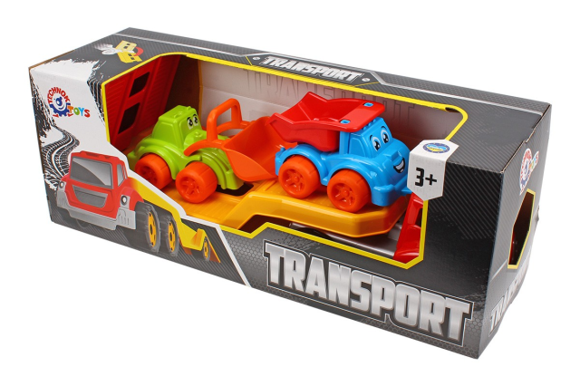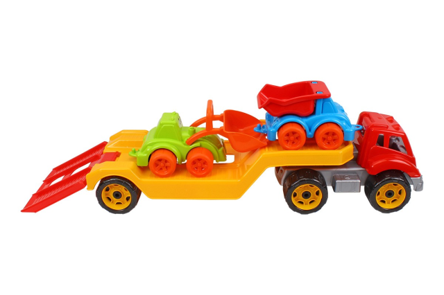 Автовоз перевозить яркую строительную технику, которая легко заезжает на прицеп. Ребенок с удовольствием организует доставку машинок на воображаемый стройплощадчик, придумывает маршруты и создает собственные сценарии игры.