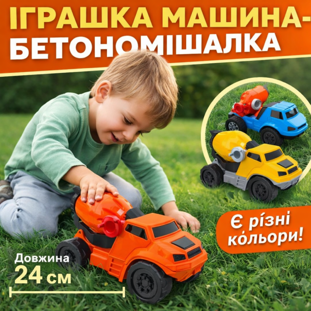 Строительство начинается с деталей и именно игрушечный автомиксер становится той машинкой без которой не обходится ни одна площадка. Он сразу привлекает внимание ребенка и захватывает игрой.